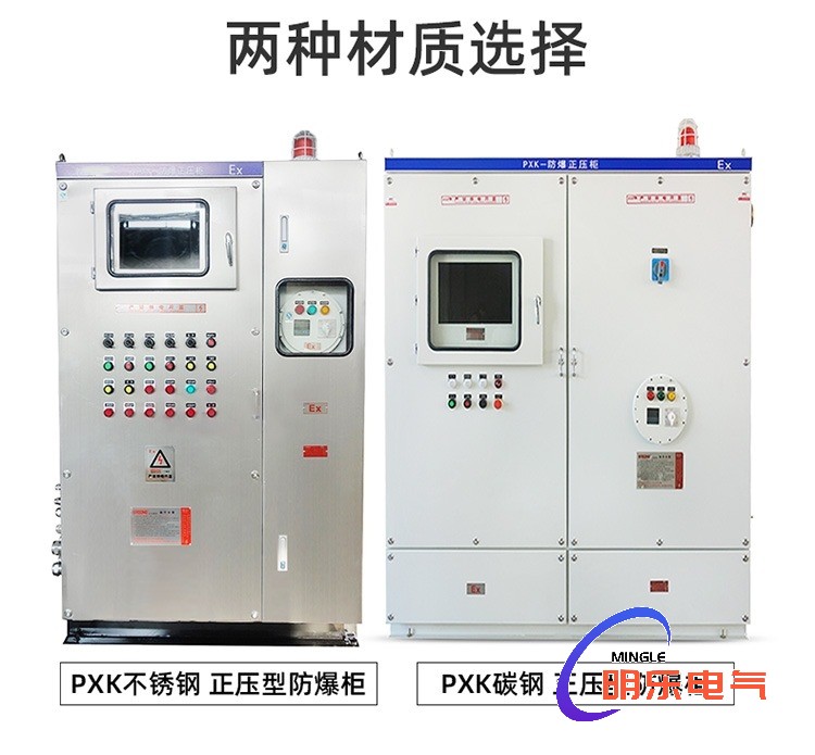 正壓柜在自動控制系統(tǒng)的控制下,通入保護氣體,正壓腔內(nèi)壓力高于正壓腔外的壓力,形成微正壓的安全小環(huán)境,從而阻止了可燃性危險氣體進入正壓腔內(nèi),保證內(nèi)裝普通儀表和電器元件的安全運行。